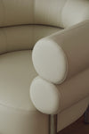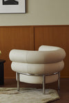 The Bagel Lounge Chair blends Bauhaus charm with a cocoon-like curved backrest, spacious seating, eco-friendly shark silicone leather, and sturdy stainless steel legs offering comfort, security, and imagination in one sculptural piece.