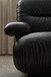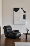 The Daifuku Lounge Chair unites premium black leather with polished stainless steel, resulting in a refined, Bauhaus-inspired statement piece. Designed for comfort, its generous 24.8" deep seat invites you to sink in and unwind, offering ample space for stretching out or relaxing together. Grado’s designers prioritize ergonomics, incorporating a gentle 3° tilt in both the seat and armrests to create a natural, supportive sitting angle. This subtle detail enhances comfort and stability, ensuring the chair delivers full-body support and a truly relaxed lounging experience.