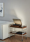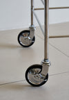 The Flowing Trolley designed in mid-century modern style, can be moved to any spot of your home as desired. Meticulously shaped and polished, the stainless steel and wood combination creates a sleek and uniquely appealing silhouette. Its wooden shelves are both detachable and height-adjustable, offering enhanced flexibility. The swivel casters ensure smooth and quiet movement, complete with brakes for stability.