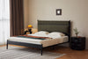 The Howorth Bed is a light French vintage-style upholstered wooden bed, featuring a high backrest that embodies minimalist design. The combination of solid wood and fabric brings a unique charm to the space. The playful upward-curving corners are a distinctive mark of the Howorth bed, breaking the quiet balance of the bedroom and instantly igniting a lively atmosphere. The two-section backrest supports the head, neck, and lower back comfortably for extended leaning. The bed frame is made of sturdy materials, ensuring no noise when turning over and providing solid support for any sleeping position.